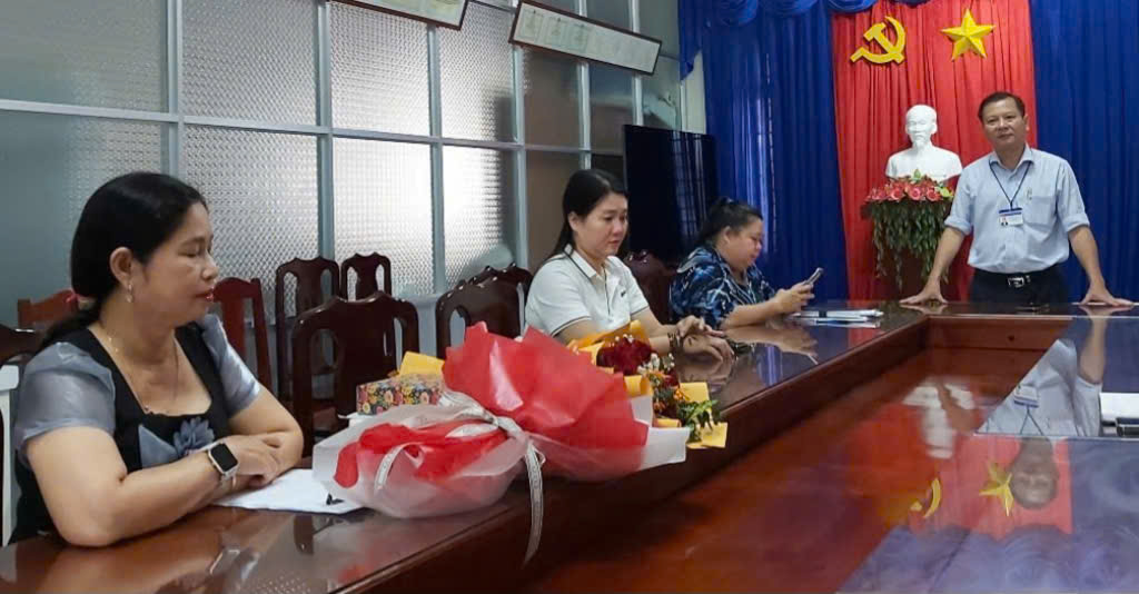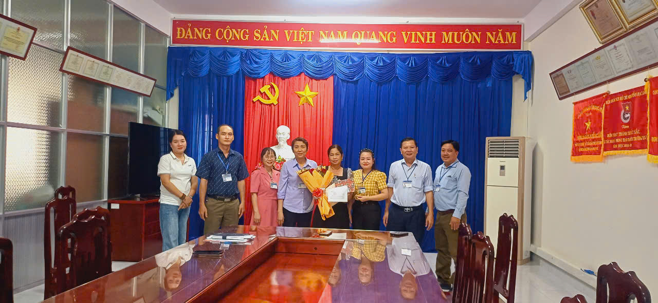 Thay mặt lãnh đạo Nhà trường, TS. Nguyễn Thanh Sang trao Quyết định và tặng hoa chúc mừng cô Trần Thị Bạch Tuyết. Đồng thời ghi nhận và đánh giá cao những nỗ lực, tâm huyết và trách nhiệm mà cô đã dành cho công tác đào tạo, quản lý học sinh sinh viên trong suốt quá trình công tác. Sự tận tâm, gương mẫu và tinh thần trách nhiệm của cô đã góp phần quan trọng vào sự phát triển chung của Nhà trường. Thầy cũng gửi lời chúc sức khỏe, hạnh phúc và mong muốn cô sẽ tiếp tục đồng hành, đóng góp kinh nghiệm quý báu cho sự phát triển của Trường cũng như của địa phương nơi cứ trú.