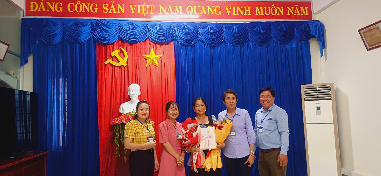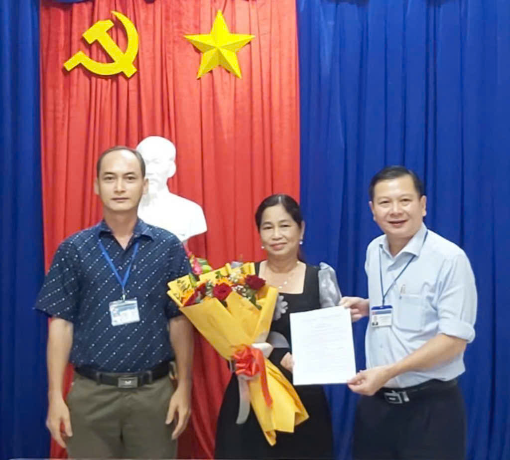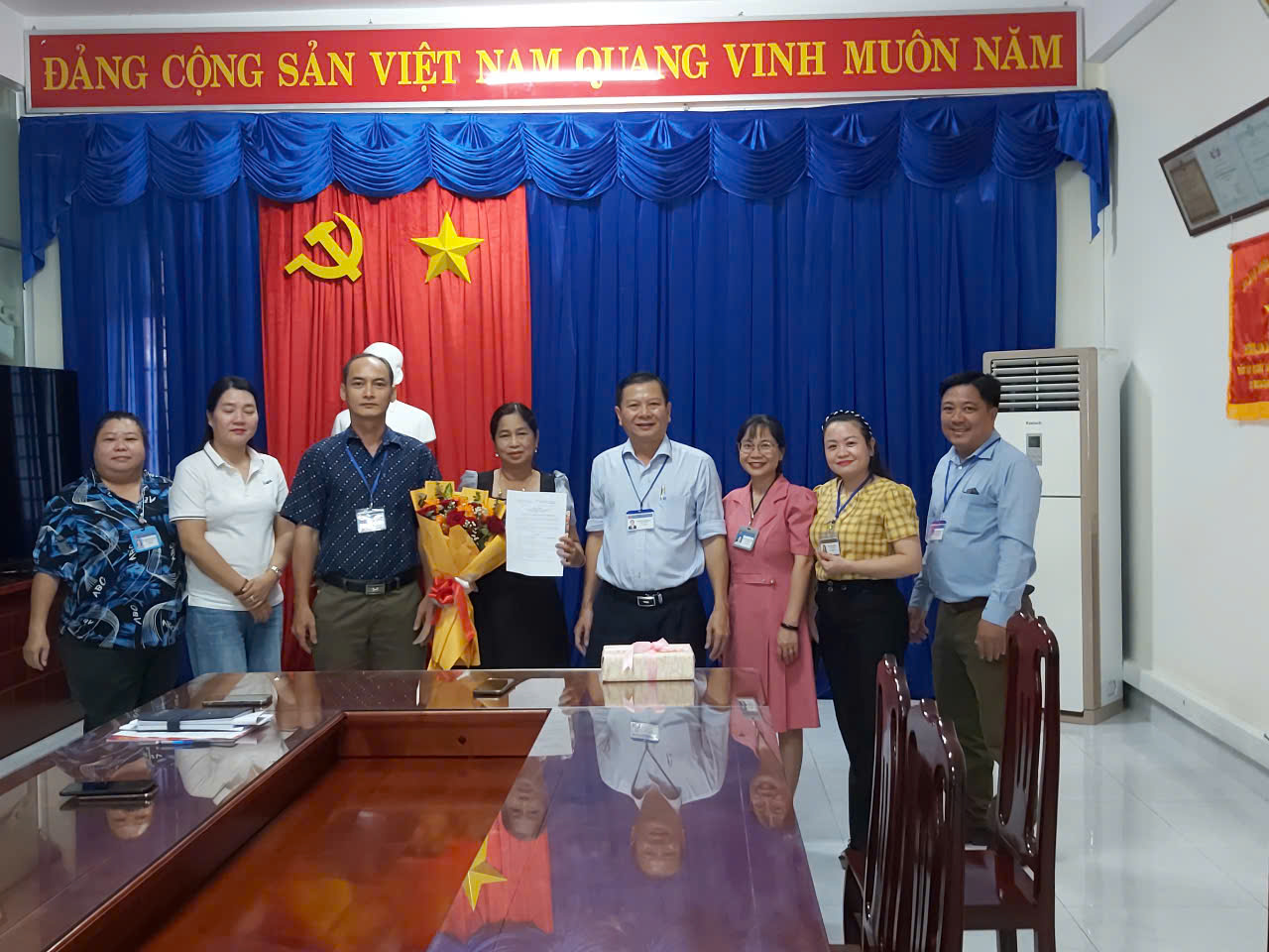 TS. Nguyễn Thanh Sang, Bí thư Đảng ủy, Hiệu trưởng Trao Quyết định và tặng hoa chúc mừng cô Trần Thị Bạch Tuyết