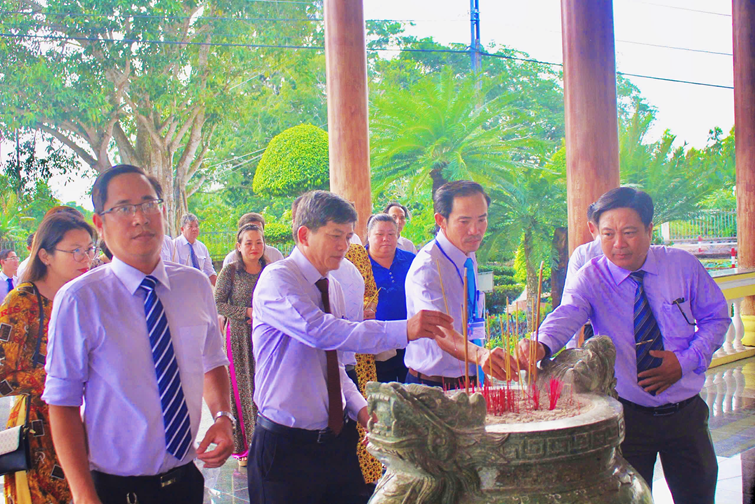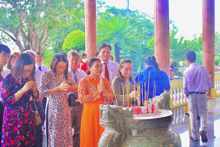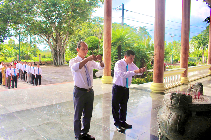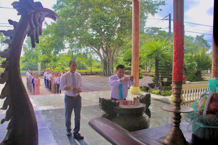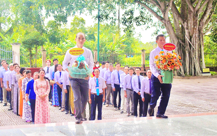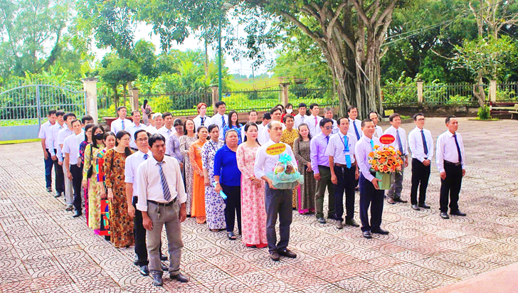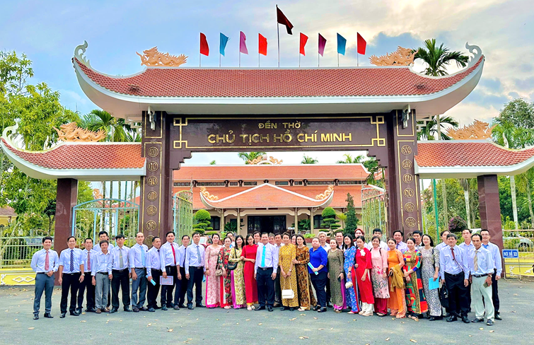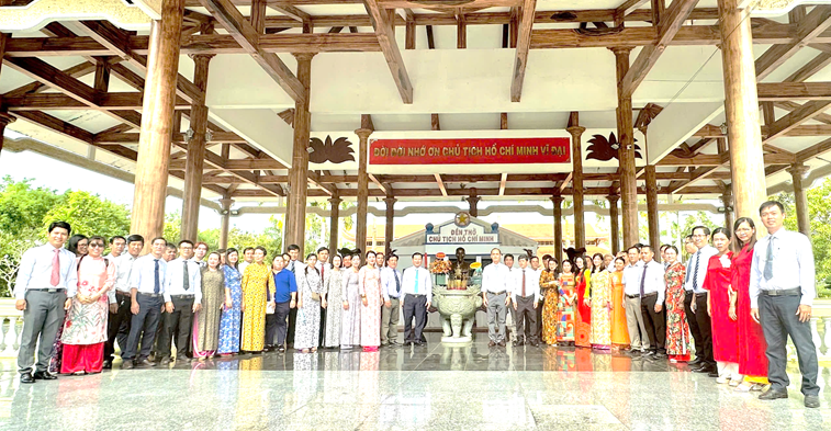 Trước Đền thờ Chủ tịch Hồ Chí Minh vĩ đại, đoàn đã bày tỏ lòng thành kính và biết ơn vô hạn đối với Bác - vị lãnh tụ thiên tài của dân tộc, danh nhân văn hóa thế giới, người đã hiến dâng cả đời mình cho độc lập, tự do, hạnh phúc của nhân dân và trân trọng kính dâng Bác những thành tích xuất sắc mà đảng bộ nhà trường đã toàn tâm, toàn ý quyết liệt thực hiện. Đồng chí Nguyễn Thanh Sang - Bí thư đảng ủy, Hiệu trưởng nhà trường tự hào báo cáo thành tích mà đảng bộ đã dốc hết tâm huyết đạt được trong năm 2024 và hứa với Bác sẽ luôn tiên phong, gương mẫu cùng với tập thể đảng bộ nhà trường cố gắng vượt khó khăn, gian khổ tiếp tục gặt hái thành công trong thời gian tới.