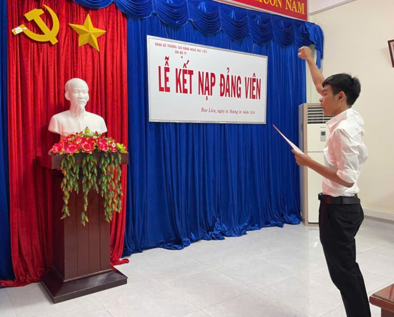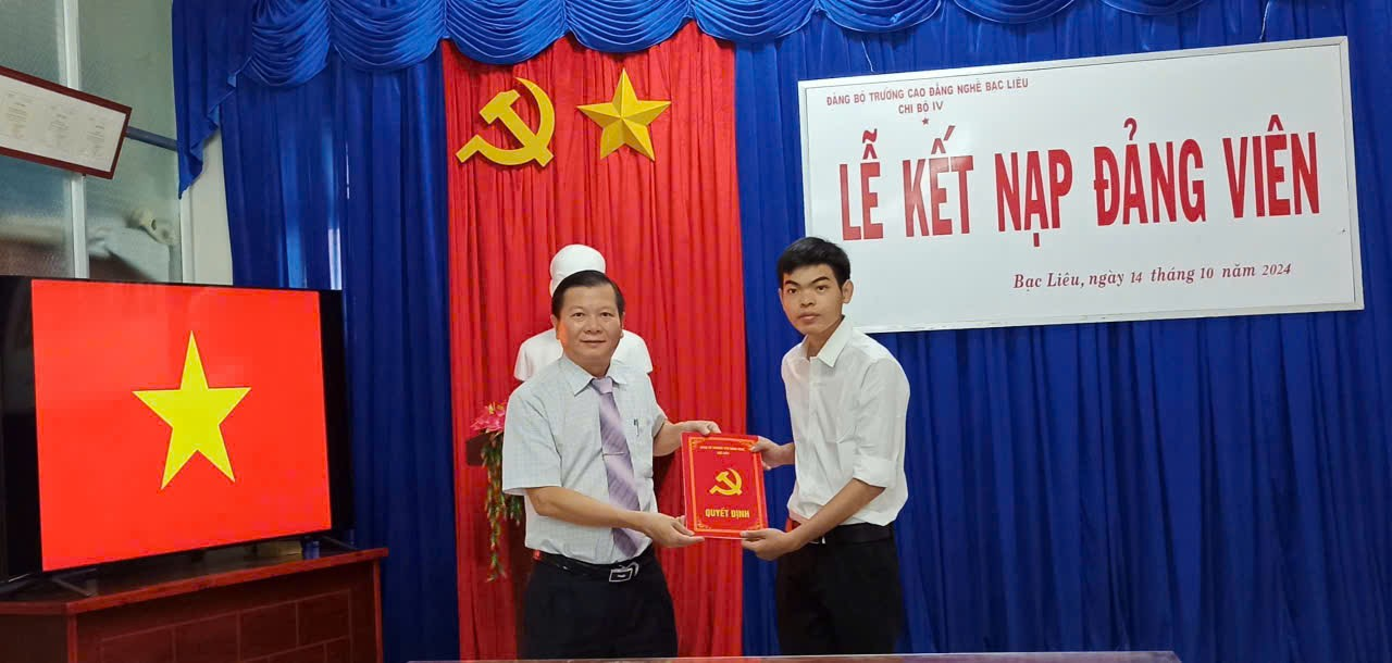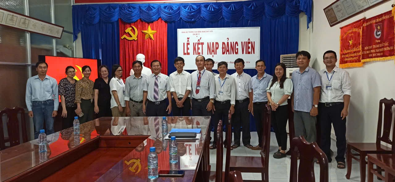 Ngày 14 tháng 10 năm 2024, Chi bộ IV thuộc Đảng bộ trường Cao đẳng nghề Bạc Liêu đã tổ chức Lễ kết nạp đảng viên cho đoàn viên ưu tú Nguyễn Nam Kha – sinh viên lớp CĐ.CNO 13. Đến dự lễ kết nạp có đồng chí Nguyễn Thanh Sang - Bí thư Đảng ủy, đồng chí Huỳnh Thanh Hùng - Ủy viên Ban thường vụ Đảng ủy, Bí thư chi bộ IV và toàn thể Đảng viên thuộc Chi bộ IV. Lễ kết nạp được diễn ra trong không khí trang nghiêm, đúng trình tự, thủ tục của Điều lệ Đảng.