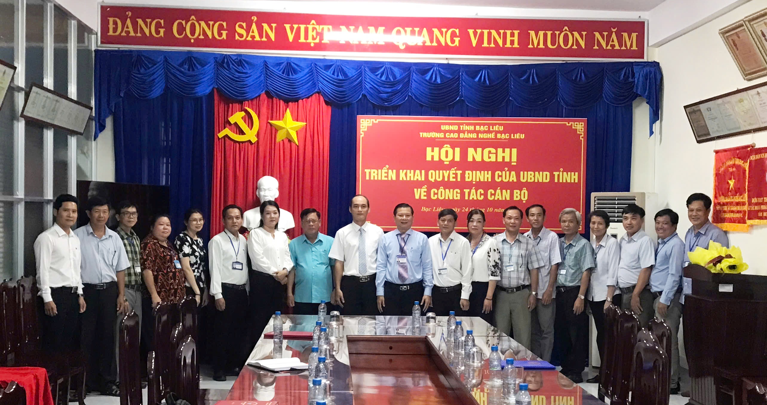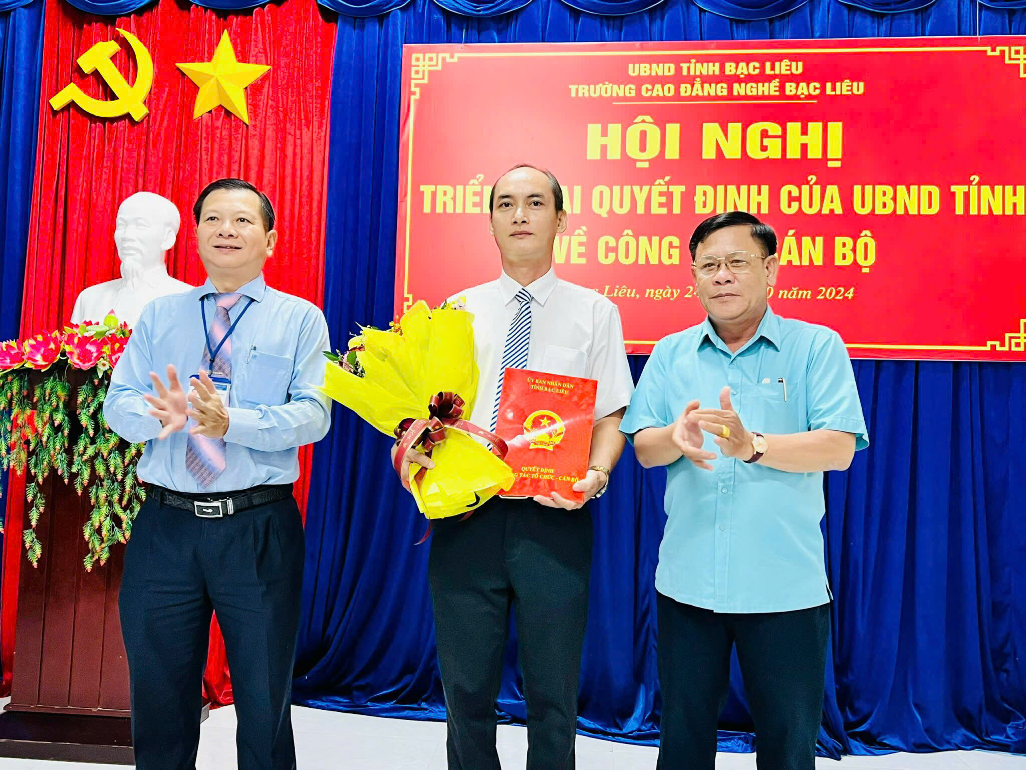 Tại hội nghị, đồng chí Nguyễn Minh Thất, Phó Giám đốc Sở Nội vụ, Chủ tịch Hội đồng Trường Cao đẳng Nghề Bạc Liêu thừa ủy quyền của Chủ tịch UBND tỉnh Bạc Liêu triển khai quyết định số 1811/QĐ-UBND, ngày 17/10/2024 về việc bổ nhiệm ông Huỳnh Thanh Hùng, Trưởng phòng Khảo thí và Đảm bảo chất lượng đào tạo, giữ chức vụ Phó Hiệu trưởng Trường Cao đẳng Nghề Bạc Liêu, thời hạn bổ nhiềm 05 năm.