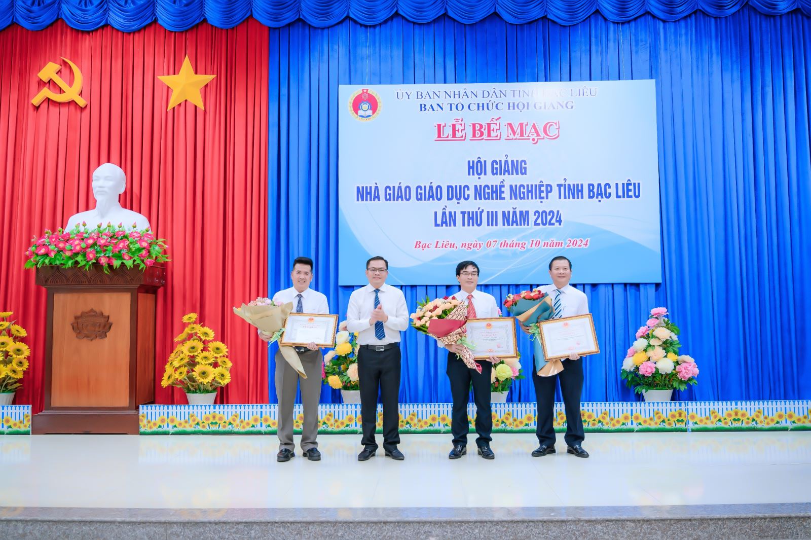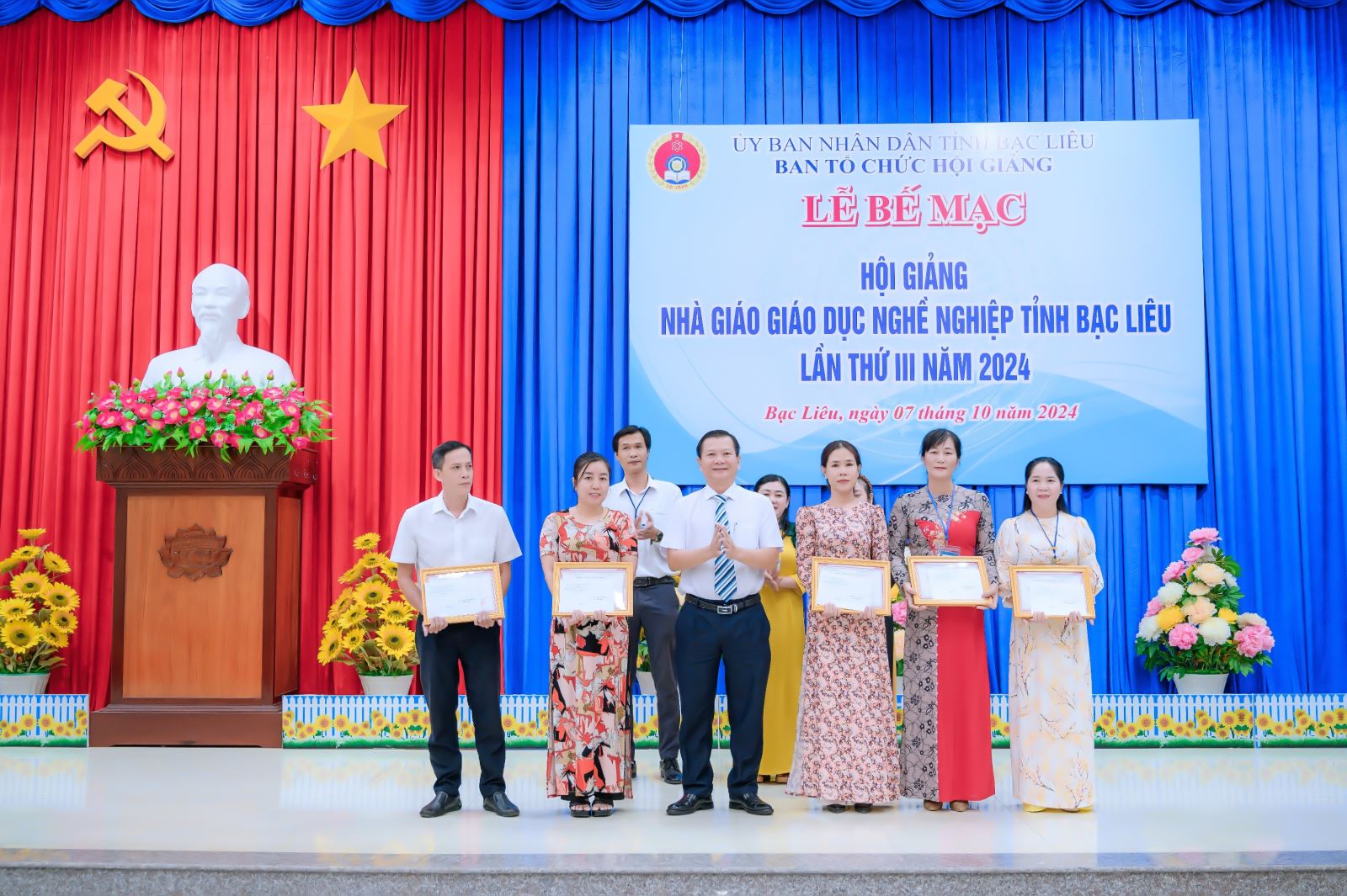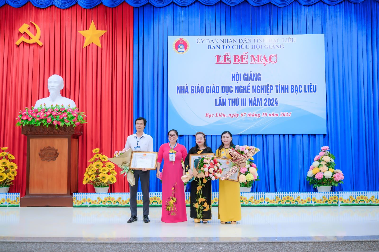 Tại lễ bế mạc Hội giảng, Trường Cao đẳng Nghề Bạc Liêu đã được Ban tổ chức trao giải Ba cho tập thể Nhà trường, 03 cá nhân có thành tích cao trong Hội giảng gồm: Cô Trần Thị Thắm, đạt Giải Nhất; Thầy Nguyễn Ngọc Châu và Cô Lê Thị Hoàng Oanh đạt giải Khuyến khích. Hội giảng nhà giáo giáo dục nghề nghiệp tỉnh Bạc Liêu lần thứ III năm 2024 đã đạt được các mục tiêu đề ra, trong đó Cô Trần Thị Thắm đại diện Trường Cao đẳng Nghề Bạc Liêu tham dự Hội giảng nhà giáo dục nghề nghiệp toàn quốc trong thời gian tới.